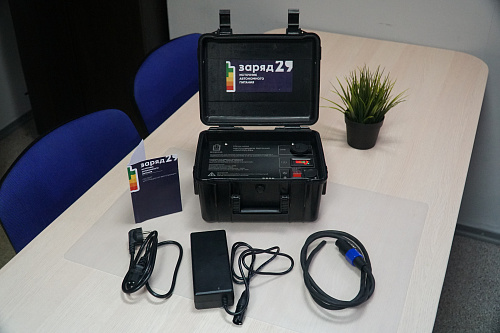 Заряд 29 - источник автономного питания для промышленных устройств требующих питания 24В. Источник удобно применить в полевых условиях, ударопрочный кейс которого выполнен и жесткого пластика и имеет защиту от пыли и влаги в закрытом состоянии. Работа с устройством возможна при закрытом кейсе что обеспечивает защиту от попадания воды, брызг, дождя. Удобный защищенный разъем находится снаружи корпуса.