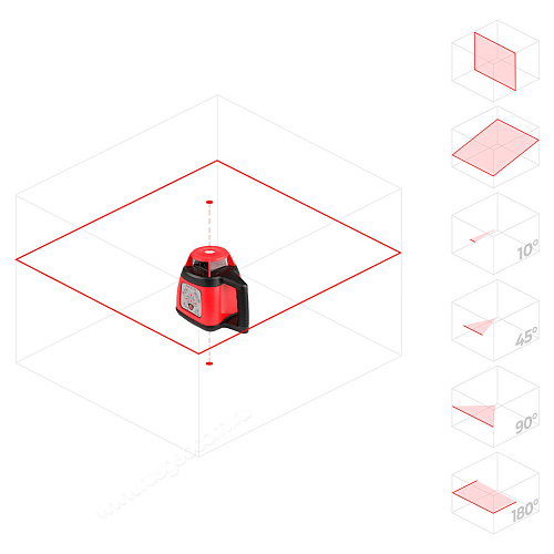 Регулируемая скорость вращения обеспечивает точную и непрерывную проекцию плоскости на любом расстоянии от прибора в пределах 200 м. Ротационный нивелир RGK SP-100 может работать в режимах 120, 300 и 600 оборотов в минуту