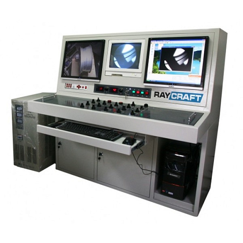 Рентгенотелевизионная установка RayCraft оборудована стационарным рентгеновским генератором с металлокерамической трубкой (может быть укомплектован трубкой любого производителя) напряжением от 100-450 кВ, манипулятором с зажимами для фиксирования образцов (манипуляторы разрабатываются в соответствии с решаемой задачей), защитной камерой (размеры могут быть выполнены согласно техническим требованиям заказчика). Включает в себя эргономичный пульт управления, преобразователь рентгеновского излучения в стандартное видеоизображение и встроенную систему улучшения качества изображения.